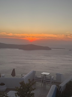 We had the pleasure of staying at Nevma Suites in Santorini. A cliffside hotel, with breakfast and our own patio overlooking the water. Lovely. Our first night we ate at a beautiful restaurant a little jaunt down a cobblestone pathway. The wind was gusty, but the stars were out. It was a lovely dinner. We stopped for beer and wine on our way back to our hotel at a store that was officially closed, but the owner took pity on us and let us in because a bunch of Canadians needed their beer to end their first evening in Greece. So nice!
