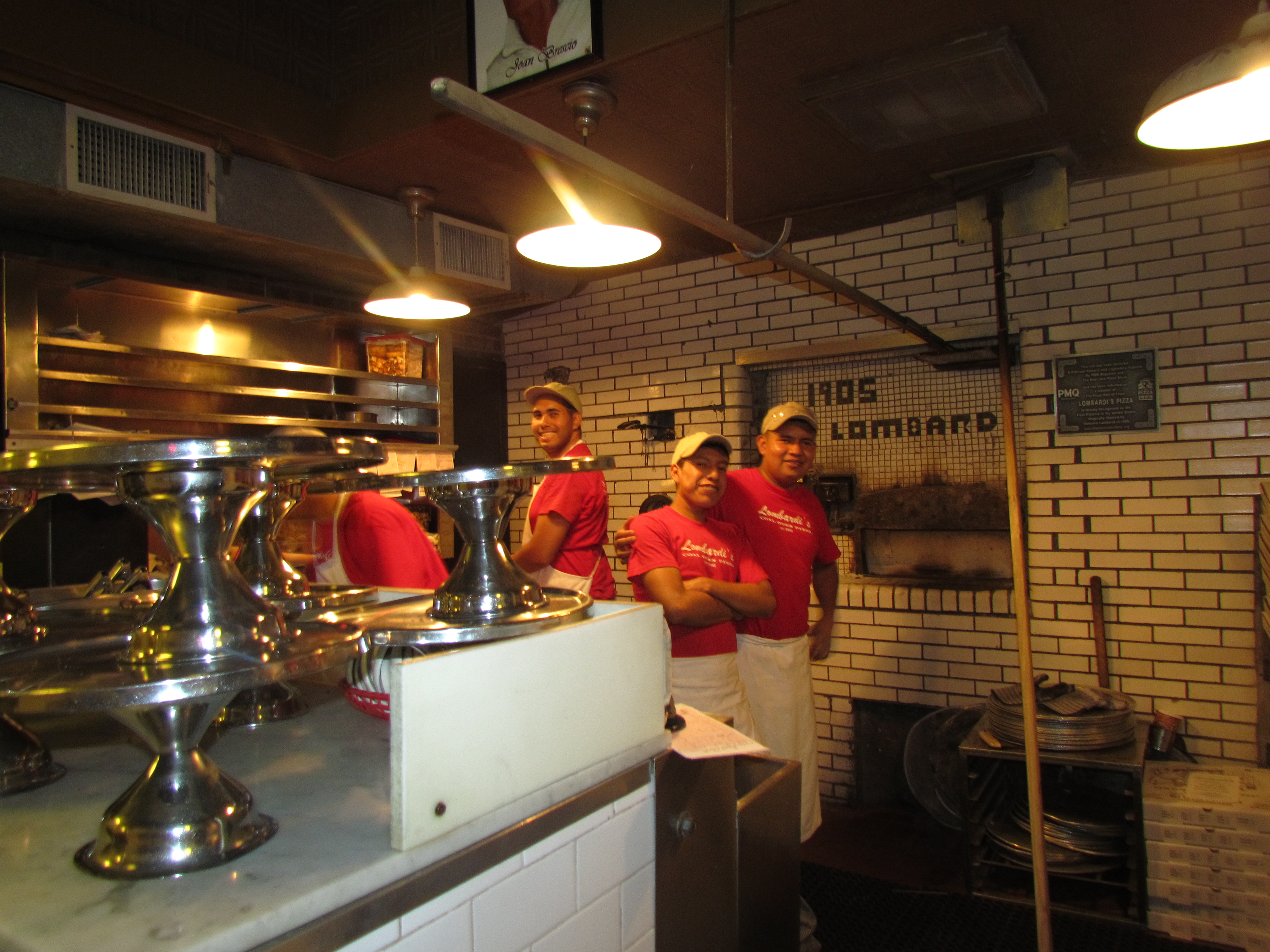 The guys in the kitchen at Lombardi’s Pizza. They made our pizza and gave me wine….I like those guys.